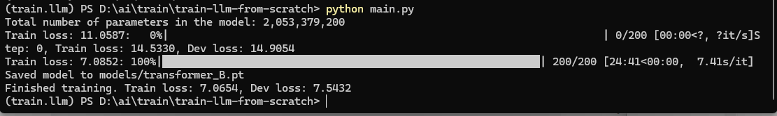 我建议你首先使用我在 GitHub 上提供的脚本训练一个 1300 万参数的模型。你将在一天内得到结果,而不必等待更长时间,或者如果你的本地 GPU 不足以训练一个十亿参数的模型时,这是一个很好的选择。(代码资源见文末)