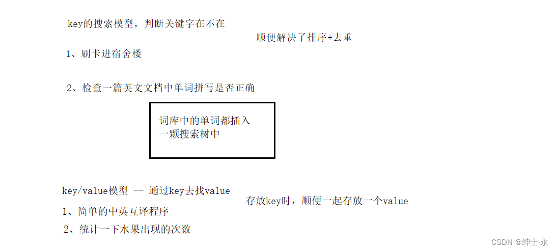 搜索二叉树主要实现的是K或K/Value模型,这里我们使用K模型来定义,即可以用O(N)的时间复杂度来进行K值的搜索。