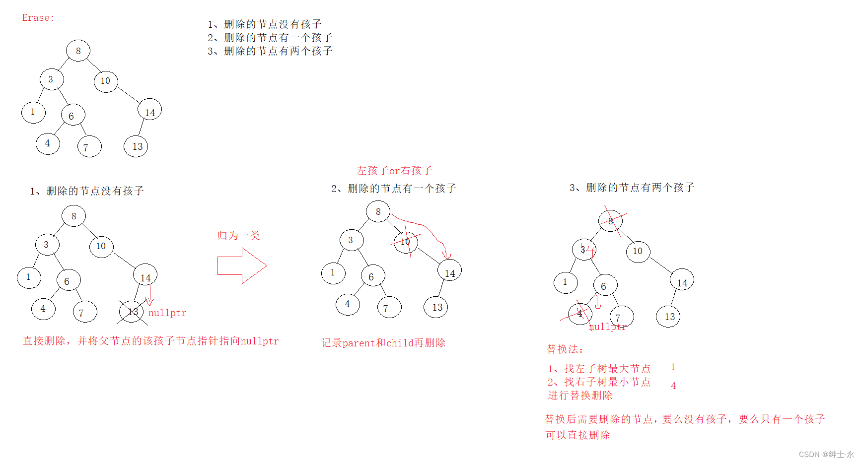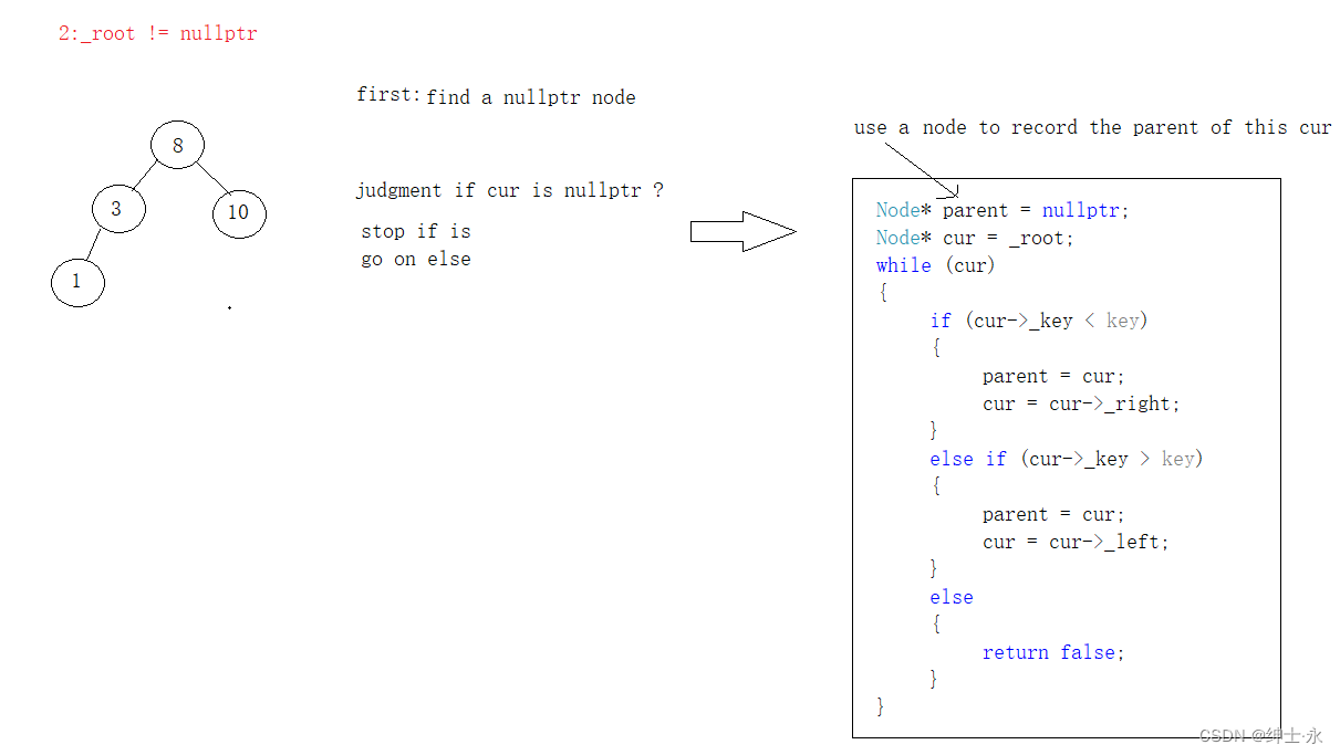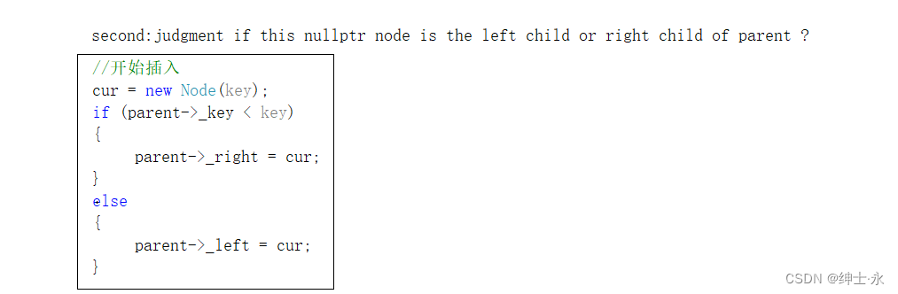 我们需要找到适合key值的空节点位置,通过搜索二叉树的性质进行排查位置