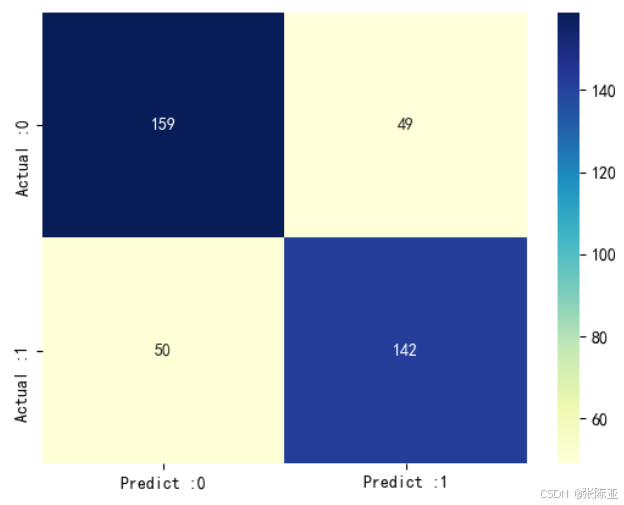 从上图可以看出,实际为0预测不为0的 有49个样本;实际为1预测不为1的 有50个样本,整体预测准确率良好。