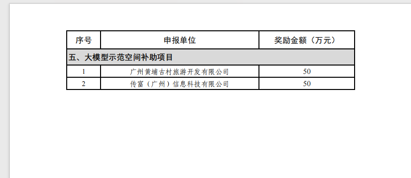 - 广州黄埔古村旅游开发有限公司、传富(广州)信息科技有限公司各获50万元示范空间补助