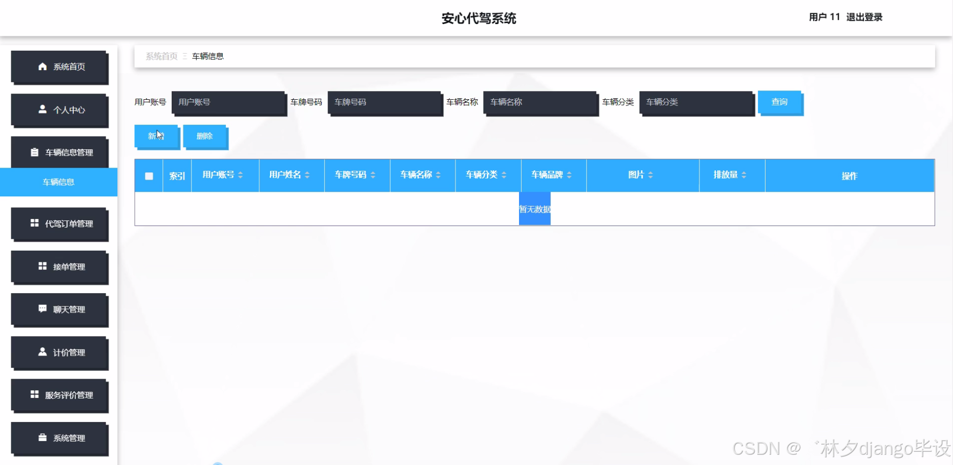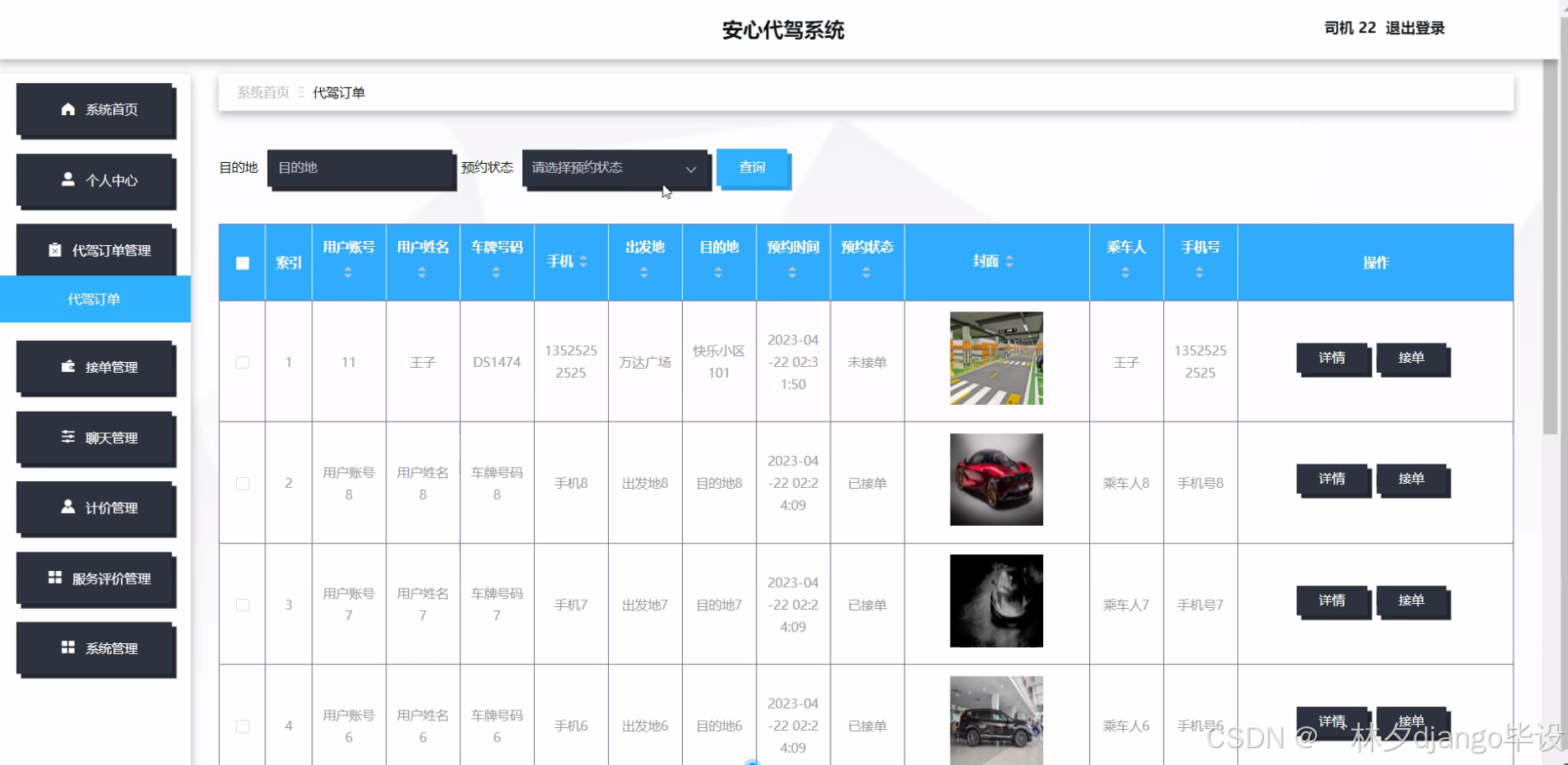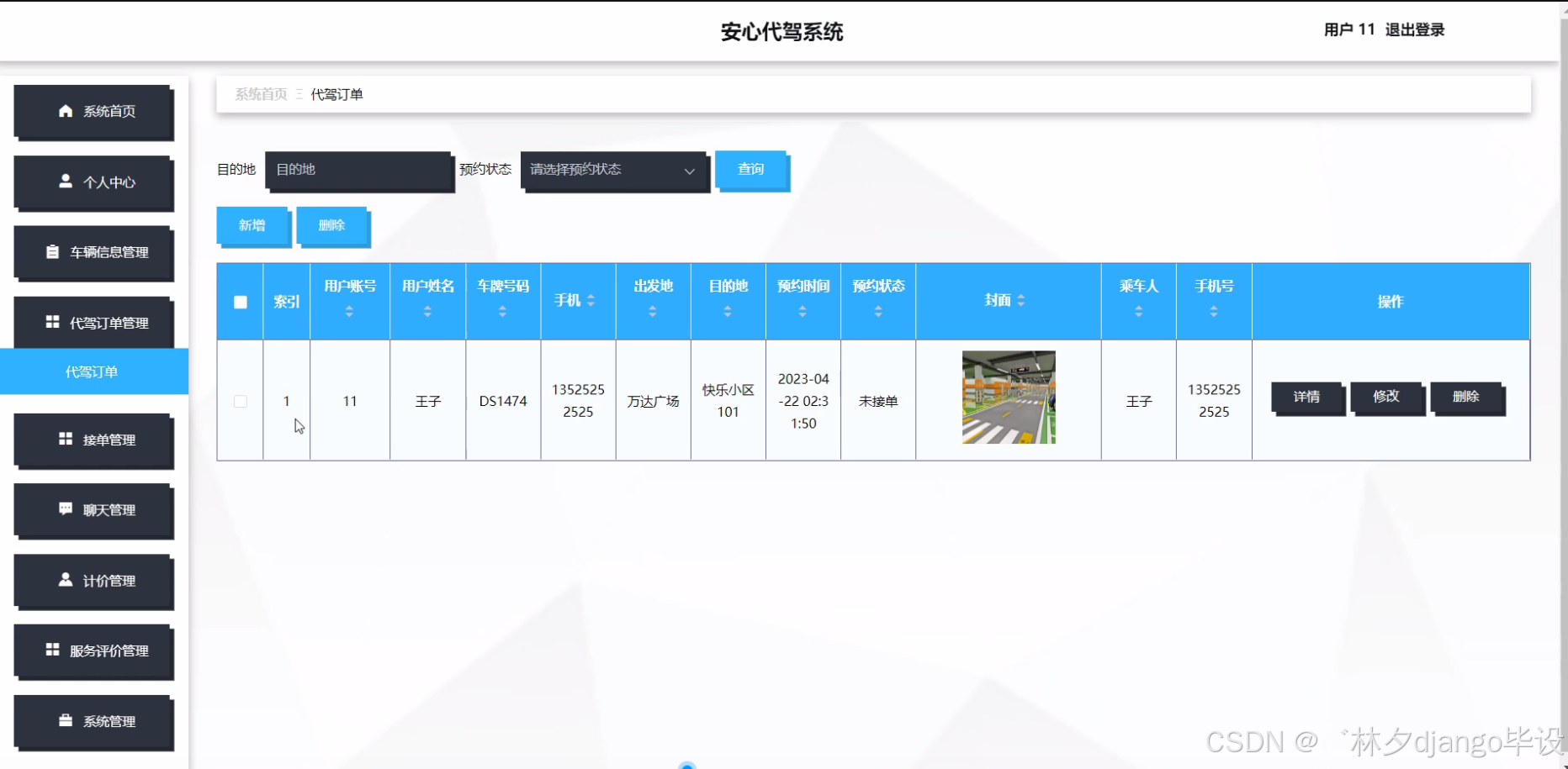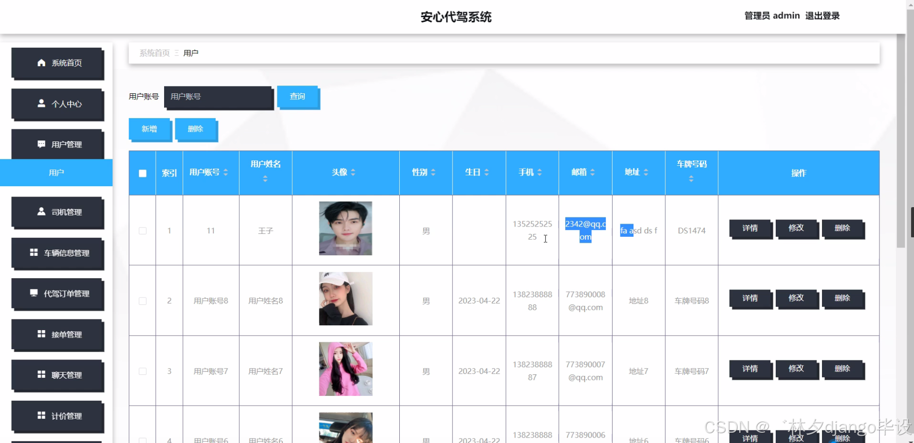 关于代驾系统的研究,现有研究主要集中在代驾服务的市场运营和监管等方面,专门针对以Python开发的代驾系统的研究较少。在国内外,代驾服务随着汽车保有量的增加而迅速发展,现有的代驾相关研究多是从商业运营模式、市场需求等宏观角度出发。例如一些研究聚焦于如何扩大代驾市场份额、提升代驾公司的管理效率等方面。然而,对于代驾系统本身内部功能模块的优化以及如何通过技术手段提升用户体验等问题的研究存在不足。本选题将以Python开发为技术支撑的安心代驾系统为研究情景,重点分析和研究系统中用户、司机、聊天、车辆信息、代驾订单、计价、服务评价、接单等功能模块的构建与优化问题,以期探寻出一套高效、便捷、可靠的代驾系统构建机制,提出针对性的对策建议,为后续更加深入的代驾系统技术研究提供基础。