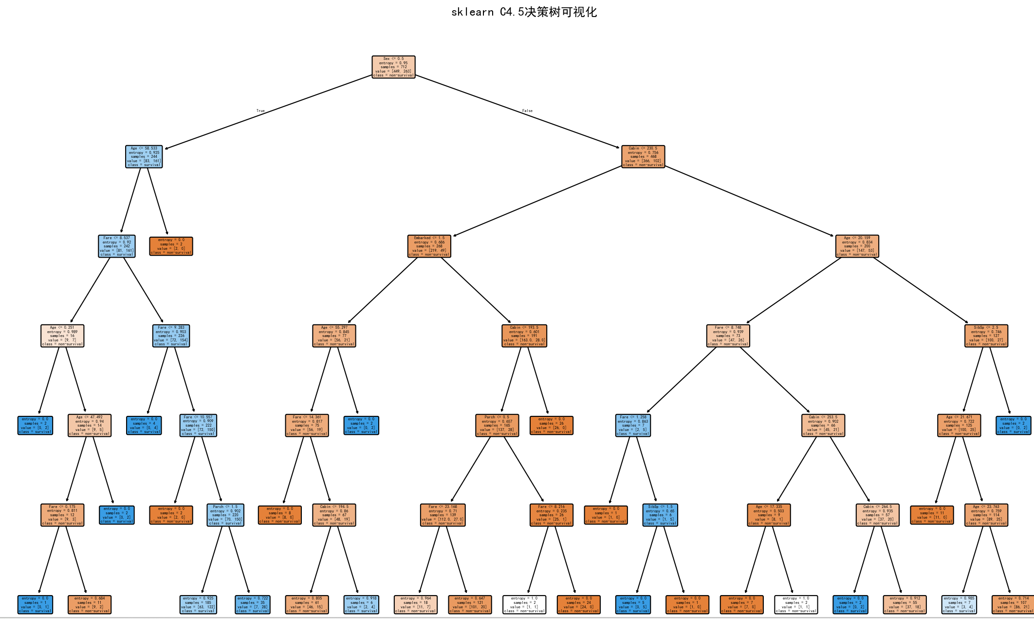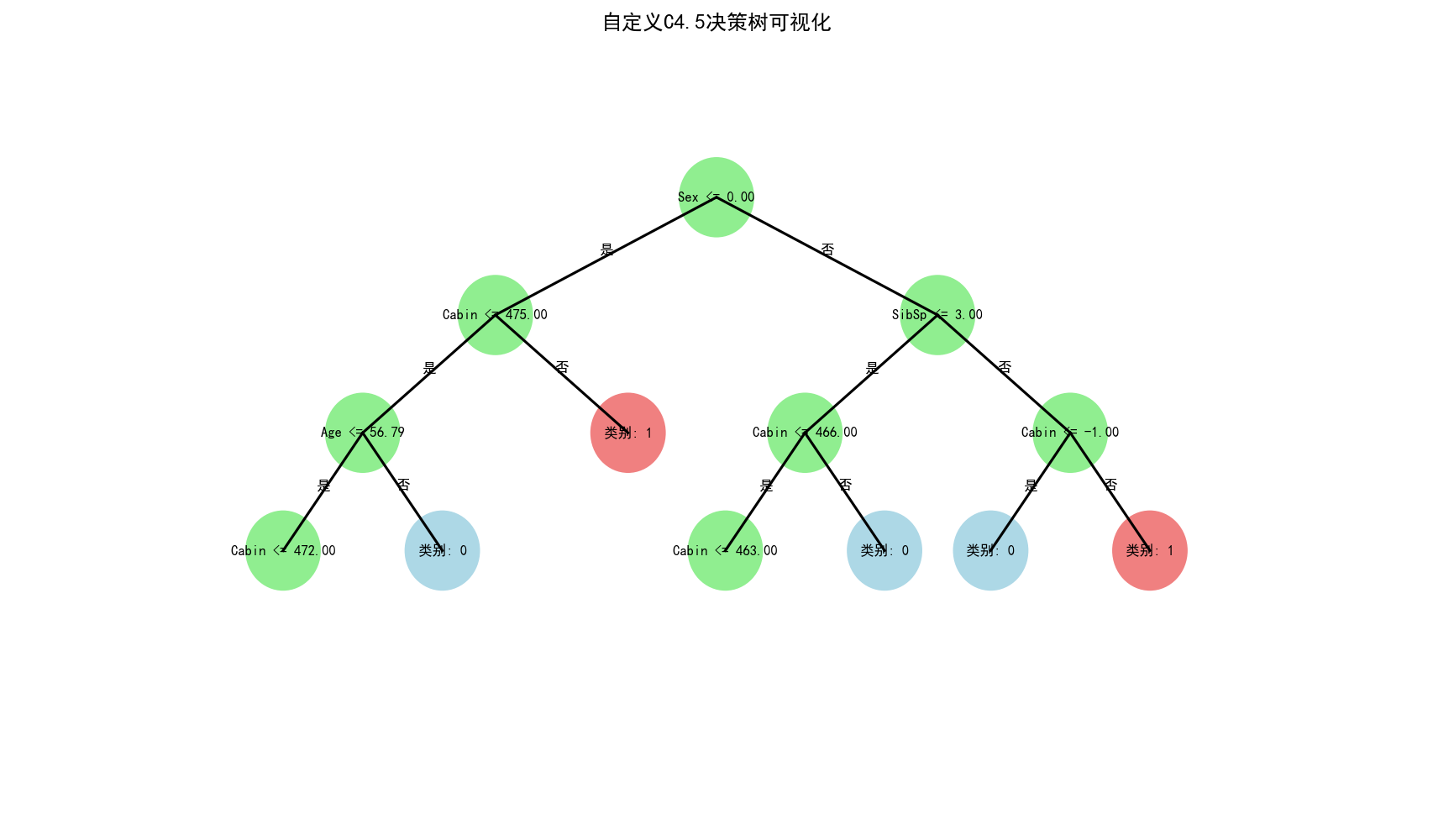 测试集准确率:C4.5:0.7039106145251397,CART:0.7374301675977654