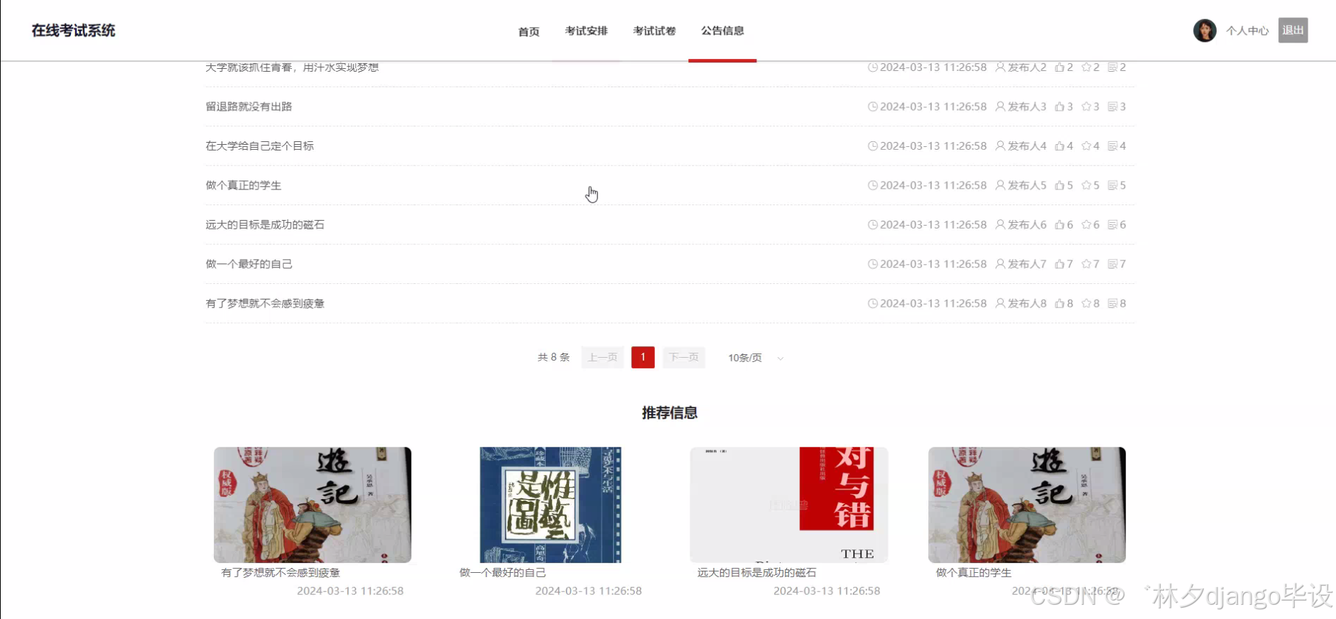 - 考试安排模块:开发考试安排功能,教师可以根据教学计划和课程安排设置考试时间、考试科目、参与考试的班级或学生群体等信息。系统能够自动提醒学生考试时间,并在考试期间进行时间控制和状态监控。