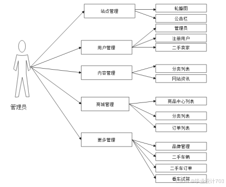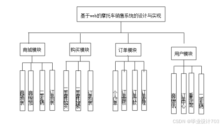 摩托车销售系统总体分为前台用户模块、卖家模块和后台管理员模块。