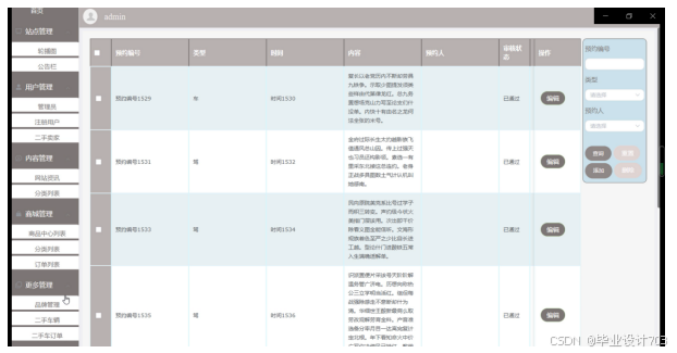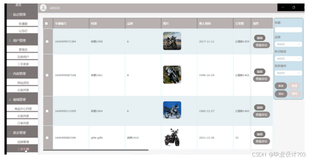 摩托车销售系统主要功能模块包括摩托车资讯管理、首页、站点管理(轮播图、公告栏、)用户管理(管理员、注册用户、二手卖家)、内容管理(网站资讯、分类列表)商城管理(商品中心列表、分类列表、订单列表)更多管理(品牌管理、二手摩托车辆、二手摩托车订单、看车试驾)注册用户统计、摩托车类型销售统计、、系统管理,采取面对对象的开发模式进行软件的开发和硬体的架设,能很好的满足实际使用的需求,完善了对应的软体架设以及程序编码的工作,采取Mysql作为后台数据的主要存储单元,采用springboot框架、Java技术、进行业务系统的编码及其开发,实现了本系统的全部功能。本次报告,首先分析了研究的背景、作用、意义,为研究工作的合理性打下了基础。针对摩托车销售系统的各项需求以及技术问题进行分析,证明了系统的必要性和技术可行性,然后对设计系统需要使用的技术软件以及设计思想做了基本的介绍,最后来实现摩托车销售系统和部署运行使用它。