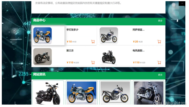 浏览摩托车资讯数据:用户可以浏览主页面的摩托车资讯数据来了解系统的最新摩托车资讯数据。