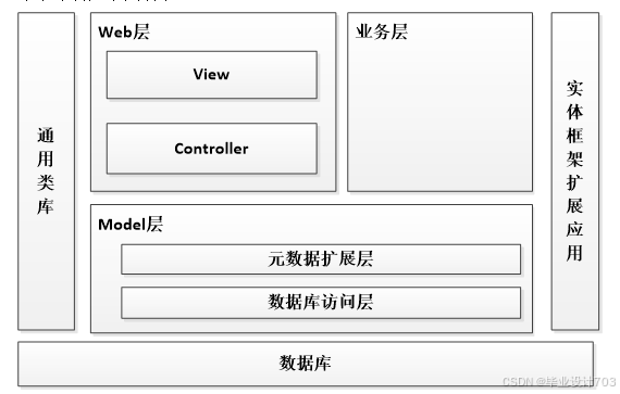 本摩托车销售系统的架构设计主要分为可以3层,主要有Web层,业务层,Model层。其中web层还包括View层和Controller层,Model层包括元数据扩展层和数据访问层。