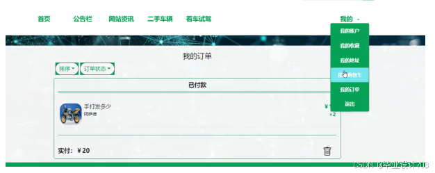 摩托车销售系统的功能主要分为前台用户根据自己的需求进行注册登录,浏览摩托车信息并对选中的摩托车进行评价、收藏等操作。卖家功能:首页、商城管理、更多管理(二手摩托车辆、二手摩托车订单、看车试驾)管理员主要对后台系统管理员因职责的不同,分为普通管理员和超级管理员,管理员主要对首页、站点管理(轮播图、公告栏、)用户管理(管理员、注册用户、二手卖家)、内容管理(网站资讯、分类列表)商城管理(商品中心列表、分类列表、订单列表)更多管理(品牌管理、二手摩托车辆、二手摩托车订单、看车试驾)进行处理。