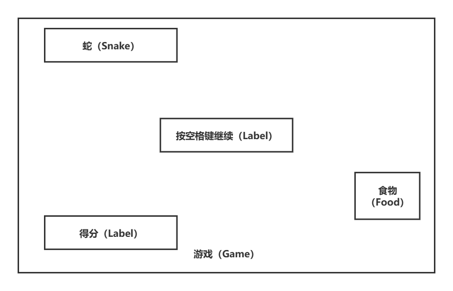 根据游戏规则,要实贪吃蛇游戏,一共需要4种对象,分别是:游戏对象、蛇对象、食物对象和文字标签对象