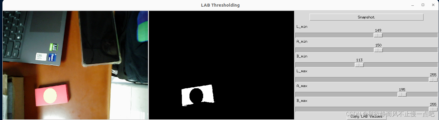 gpt4实现对摄像头帧缓冲区图像的LAB阈值选择界面(python-opencv)