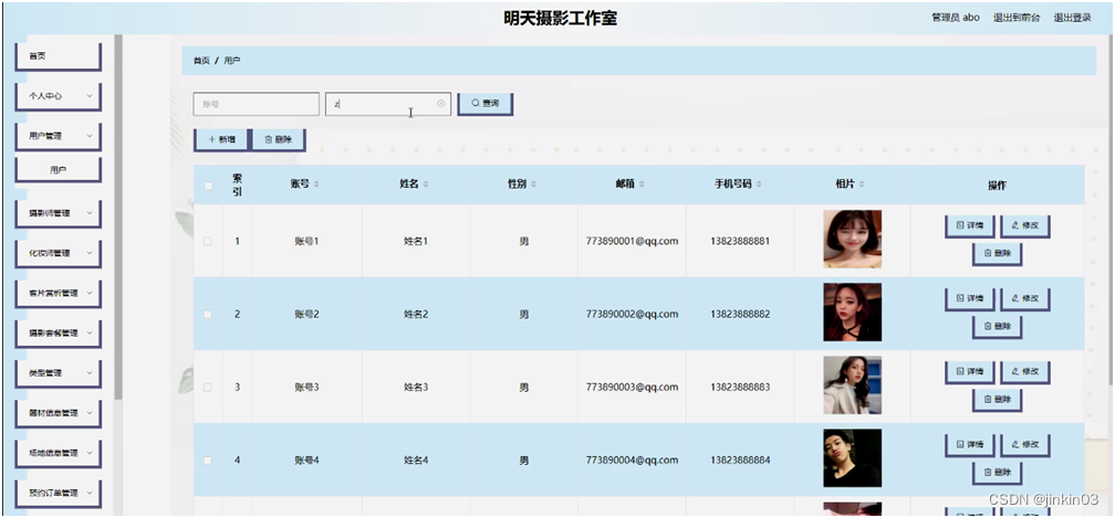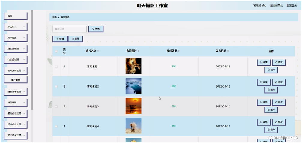 java/php/node.js/python明天摄影工作室【2024年毕设】