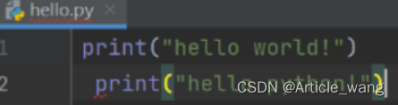- 手误,如使用 pirnt("Hello world"),运行代码,将提示: