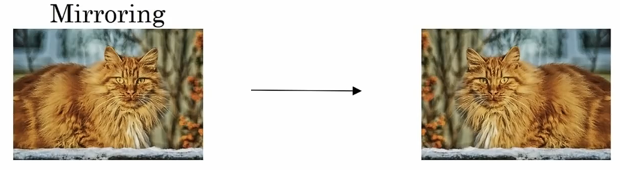 对大部分计算机视觉工作来说,如果左边的图片是一只猫,那镜像后仍然是一只猫。镜像操作保留了你想要识别的图像内容,这是一种很好用的数据增强技术。