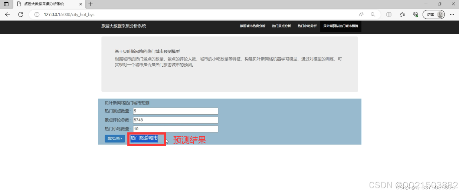 result = '热门旅游城市' if pred else '非热门旅游城市'