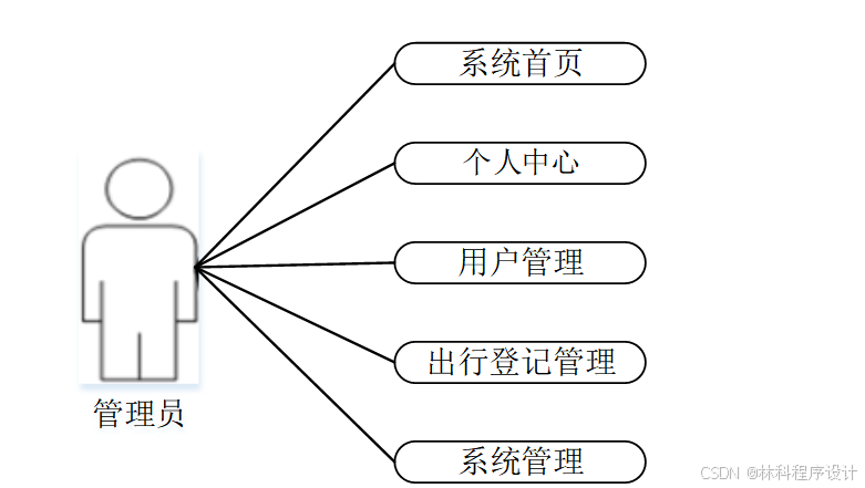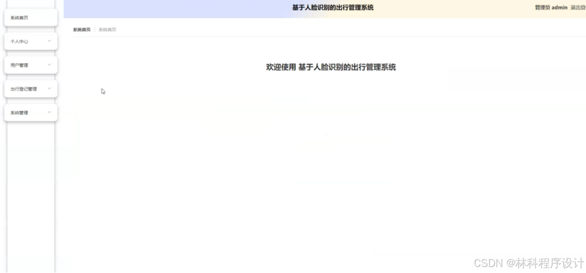 管理员进入主页面,主要功能包括对系统首页、个人中心、用户管理、出行登记管理、系统管理等进行操作。管理员主页面如图5-7所示: