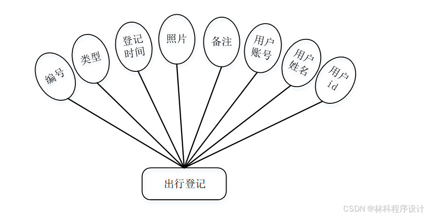 通过对人脸识别的出行管理系统的主要功能信息进行规划并分为若干功能实体信息,实体信息将使用E-R图加以表示,本系统的主要功能实体图如图4-2、图4-3、图4-4所示。