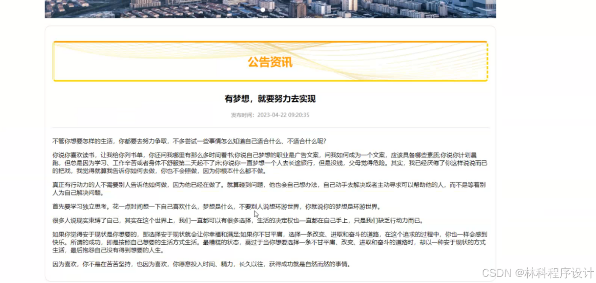 公告资讯:在公告资讯页面的输入栏中输入标题进行查询,可以查看到公告资讯详细信息;如图5-4所示: